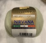 Golden Line, Nirvana - Lace weight yarn. Color 4 - Ice Lime Green, lot 80121. 100% Merino Wool, 372 yards / 25 grams Gauge 34.0 sts = 4 inches, Needle size US 0 - 1.5 or 2 - 2.5mm