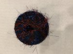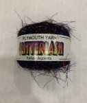 Glitterlash - Plymouth Yarn; 25g, 185yd 50% Polyester, 50% Metallic. Eyelash texture. Metalic. Lace weight. Red and Blue.
